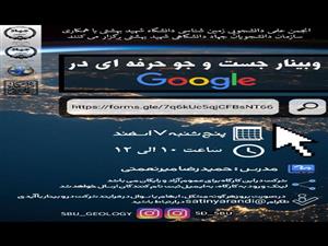 سازمان دانشجویان شعبه شهید بهشتی با مشارکت انجمن علمی دانشجویی زمین شناسی دانشگاه شهید بهشتی وبینار جست و جو حرفه ای در Google را روز پنجشنبه 7 اسفندماه به صورت مجازی برگزار می نمایند.شرکت در این کارگاه برای عموم آزاد و رایگان می باشد.